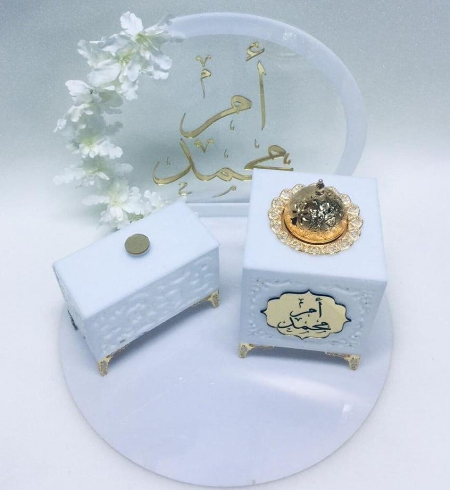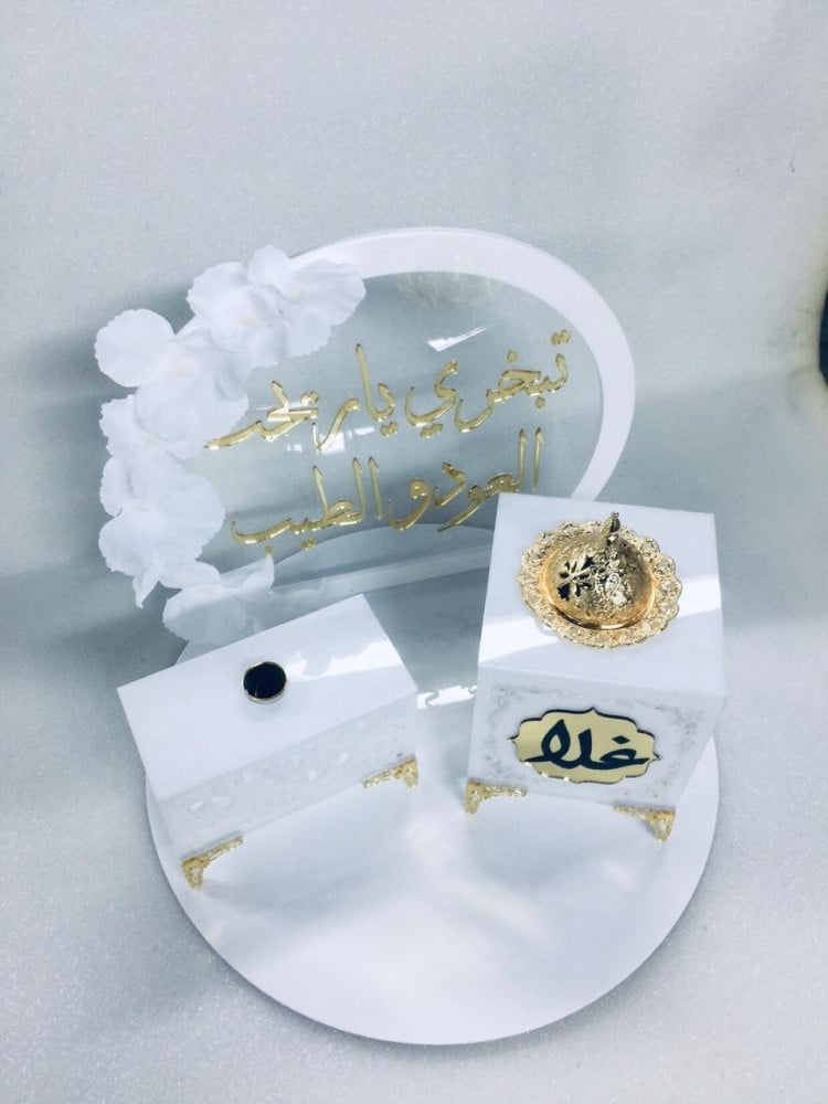 يمكن تنفيذ اي لون تطلبينه امكانيه التغير و كتابة اي عباره او اسم على المبخره والطاقم او اي شي حابه تضيفينه